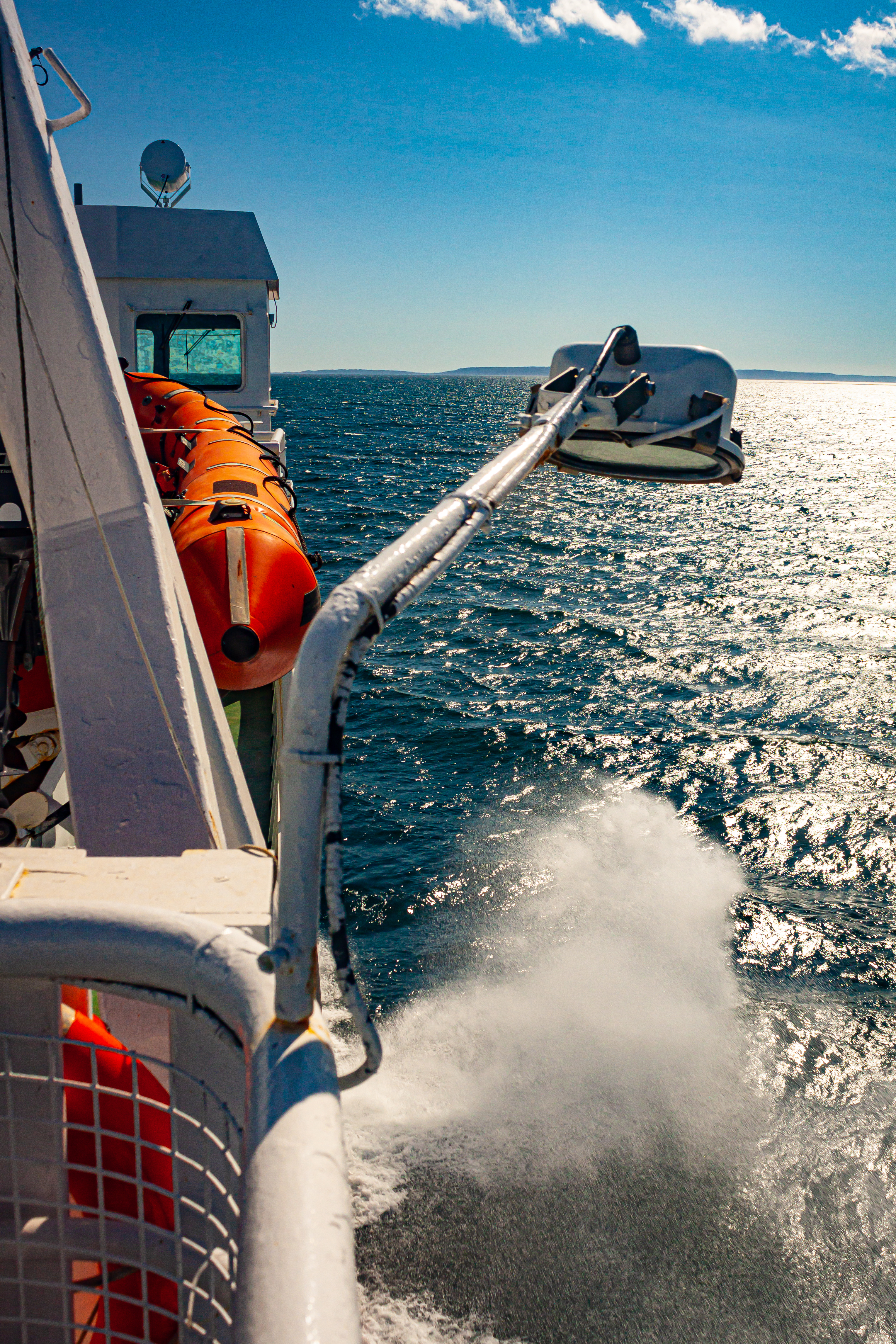 Nor were the seas themselves, no matter which body of water was technically surrounding me. The captain estimated swells of less than one metre. Oh, there were drops of two or three metres that rattled the coccyx, but these were occasional. Even a lake tripping canoeist like me knew this was a gentle day in a stable boat, well within its design parameters. This wasn’t an issue.