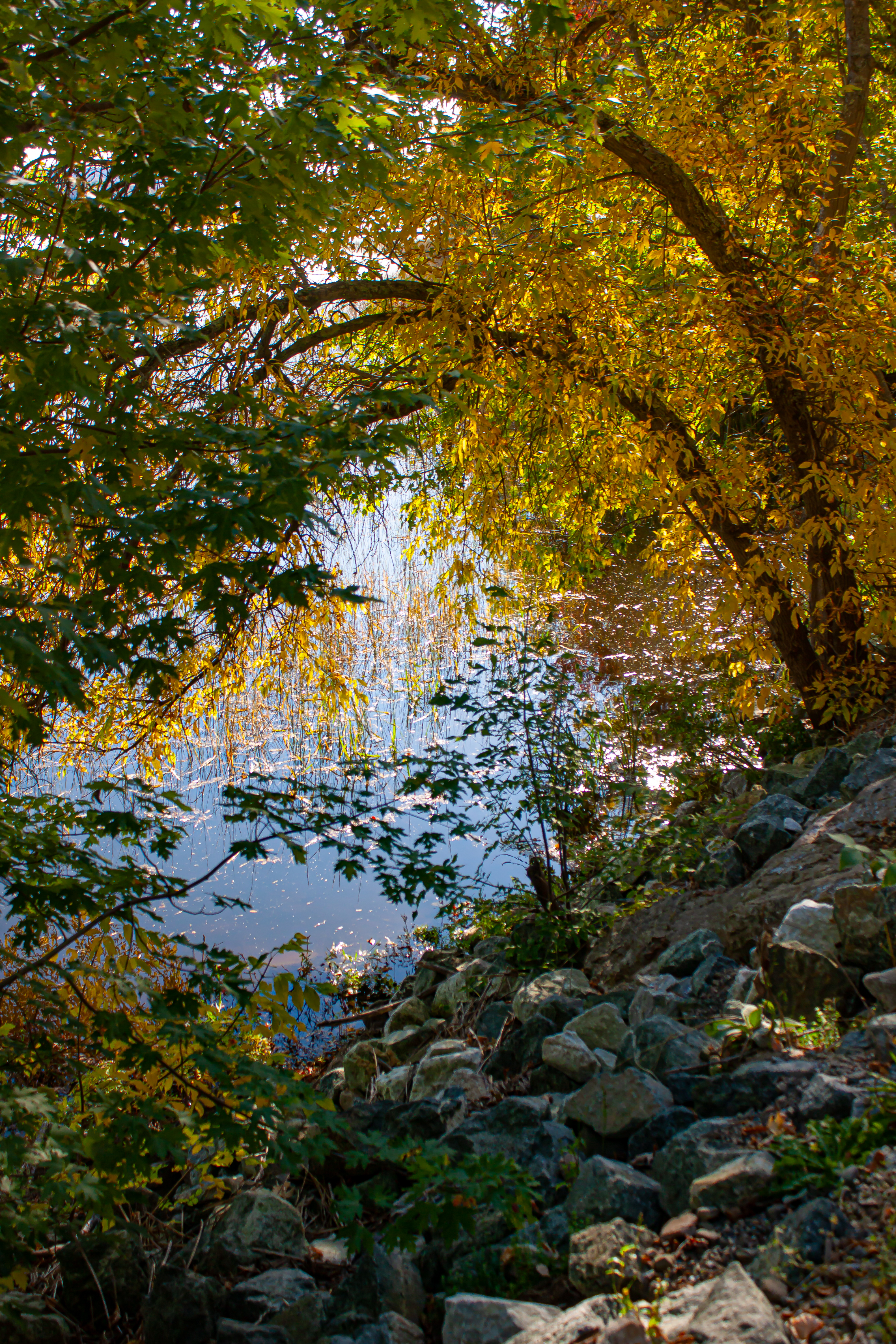 Then, instead of turning left, I to-hell-with-it turned right and drew upon many map viewings. I was vaguely aware of Kingston being across a ferry so I went thataway. The photos that follow were gathered along the way. Along with some fish cakes and a beef short rib, this year’s Thanksgiving protein. There’s no end to the blue skies in this province, and they’re setting off the emergent fall colours in a lovely way.